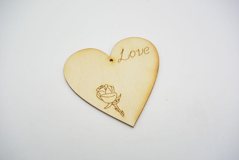 Ξύλινο Διακοσμητικό καρδιά χαραγμένη με τριαντάφυλλο (500171)
