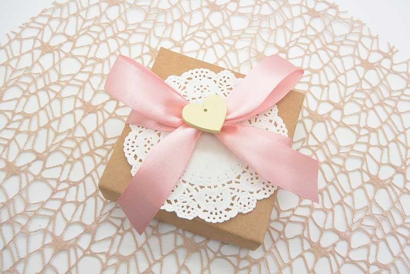 Μπομπονιέρα Κουτί χάρτινο με διακοσμητική ξύλινη καρδιά. Η τιμή αφορά την μπομπονιέρα δεμένη με 5 κουφέτα αμυγδάλου. Διάσταση κουτιού 8,5x8,5x2,5cm.
