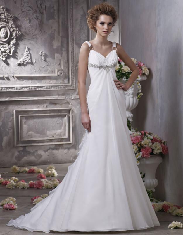 Άλφα Γραμμή | Νυφικό Σιφόν με swarovski στο μπούστο (0173)