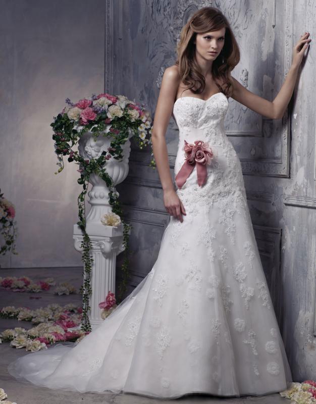 Οικονομικό Νυφικό από μεταξωτή γαλλική δαντέλα σε άλφα γραμμή με μικρή ουρά. Έχει κεντημένο στη μέση ένα ιδιαίτερο λουλούδι σατέν. Μπορεί να γίνει σε οποιοδήποτε χρώμα της επιλογής σας. 'Ολα τα νυφικά μας διαθέτουν ενσωματωμένο φουρό.