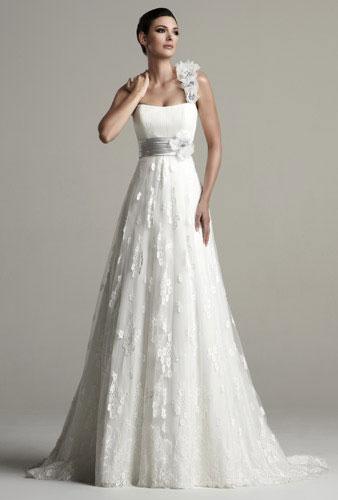 Οικονομικά Νυφικά | Νυφικό Δαντέλα με λεπτομέρεια λουλούδι (0101)