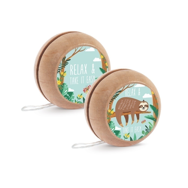 Ξύλινο natural γιο-γιο με σκοινάκι. Είναι διακοσμημένο με αυτοκόλλητο print Βραδύποδας με διαφορετικό σχέδιο μπρος-πίσω.