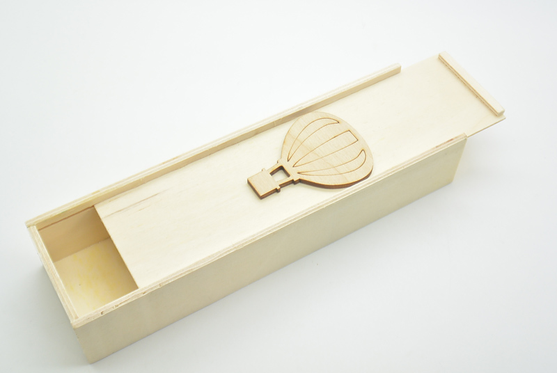 Ξύλινη Κασετίνα αερόστατο με διάσταση 20cm x 6cm x 3.4cm.