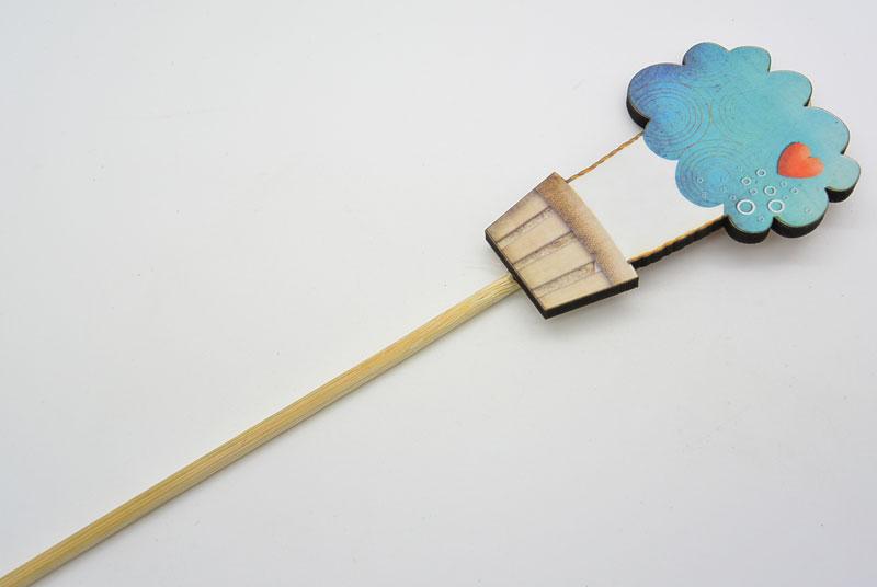 Ξύλινο Στικ αερόστατο. Μπορεί να γίνει οποιαδήποτε θέμα επιθυμείτε. Το διακοσμητικό στην κορυφή έχει διάσταση 8cm το μέγεθος του stick είναι 30 εκ.