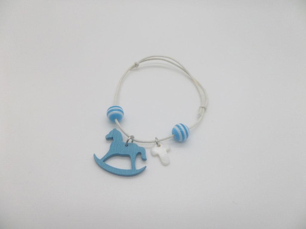 Μαρτυρικό Βραχιολάκι με ξύλινο αλογάκι και σταυρό φίλντισι. Η τιμή αφορά το τεμάχιο.