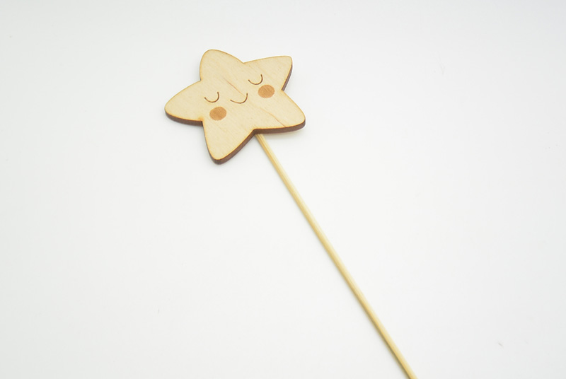 Ξύλινο Στικ αστεράκι με χαμόγελο για μπομπονιέρες ή διακόσμηση βάπτισης. Το ξύλινο διακοσμητικό έχει διάσταση 8 εκ και αφορά την μεγαλύτερη διάσταση του διακοσμητικού είτε πλάτος είτε ύψος και το στικ έχει διάσταση 34 εκ.