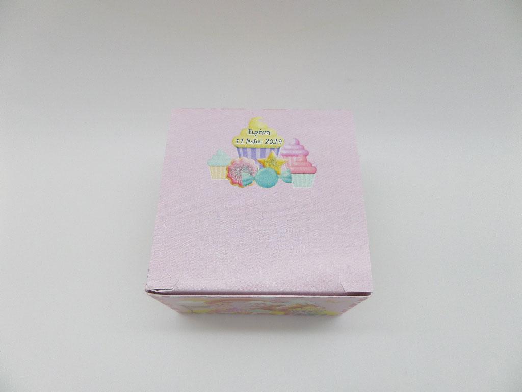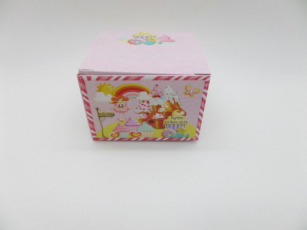 Κουτάκι για παστάκι cupcake με διαστάσεις 6,5 x 6,5 x 4,5. Μπορεί να γίνει με οποιαδήποτε φιγούρα θέλετε. Το ίδιο μπορεί να γίνει και μπομπονιέρα. Η τιμή αφορά μόνο το κουτάκι.