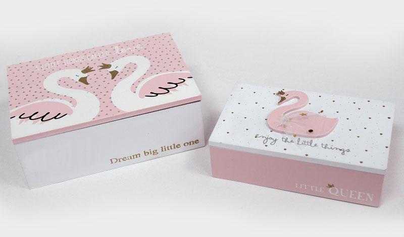 Ξύλινο Σετ κύκνος κουτιά 2 τεμαχίων. Διάσταση 17cm x 12cm x Y6cm και 15cm x 10cm x Y4cm.