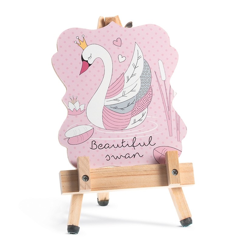 Ξύλινο καδράκι κύκνος σε natural καβαλέτο.