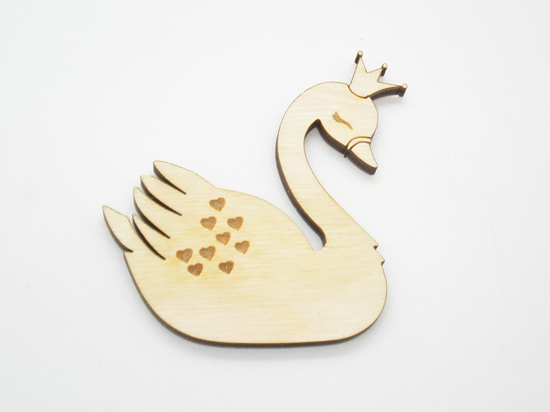 Ξύλινο Διακοσμητικό κύκνος με στέμμα και καρδιές. Διαστάσεις 7 x 6.8 εκ.