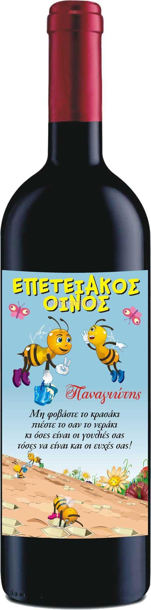 Ετικέτα Κρασιού με θέμα μελισσούλες για εντυπωσιακό στολισμό στην δεξίωση της βάπτισης του παιδιού σας.