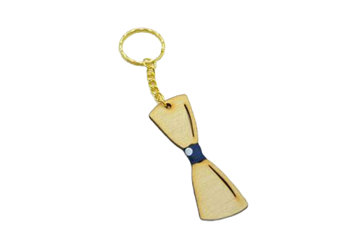 Μπρελόκ Παπιγιόν ξύλινο με διάσταση 13 εκ και αλυσίδα χρυσή.