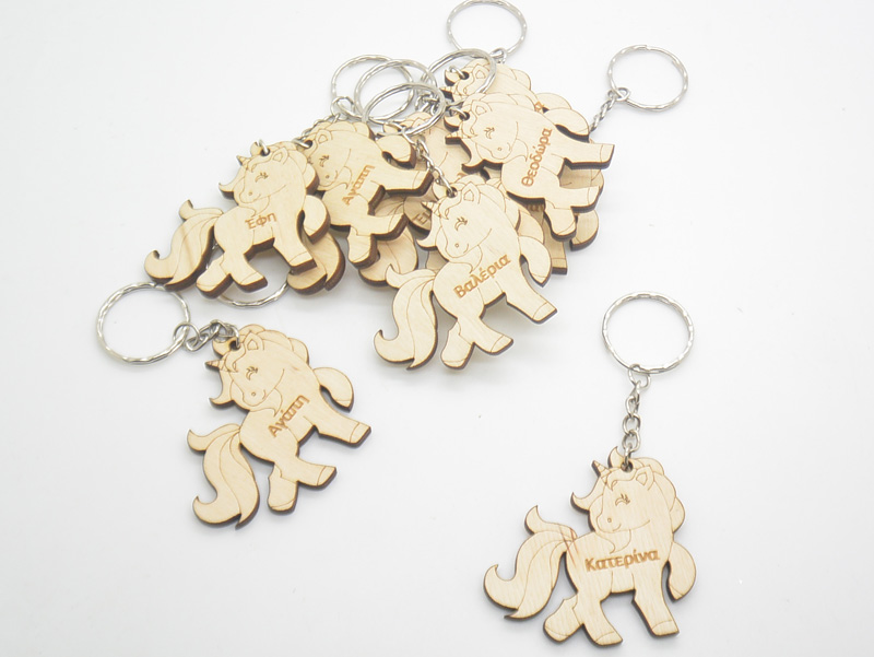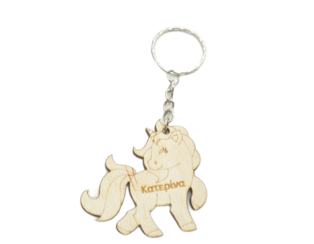 Αναμνηστικό Μπρελόκ με το όνομα του παιδιού για πάρτι ή δωράκι αναμνηστικό σε σχολείο με σχέδιο μονόκερο. Διάσταση 11,5 εκ και ξύλινο 5.5 εκ. Μπορείτε να επιλέξετε διαφορετικά ονόματα.