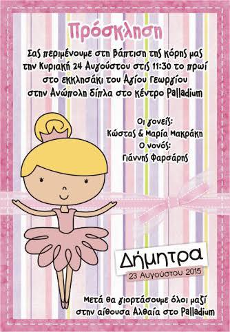 Προσκλητήριο Βάπτισης μπαλαρίνα (w599)