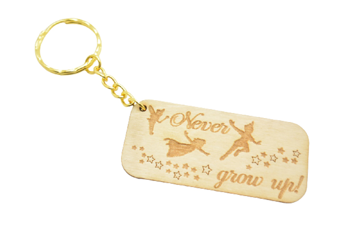 Ξύλινο Μπρελόκ never grow up! Με διάσταση 13 εκ μήκος με τον κρίκο και διάσταση ξύλινου 7 x 3,2 εκ.