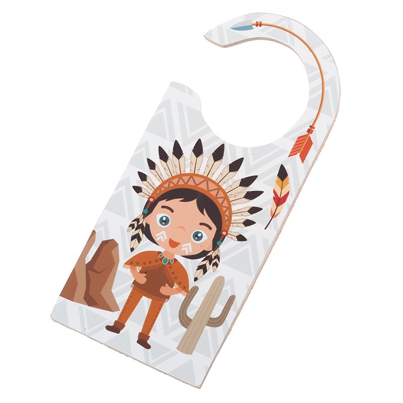 Ξύλινο κρεμαστό διακοσμητικό πόρτας με αυτοκόλλητο ινδιάνος.