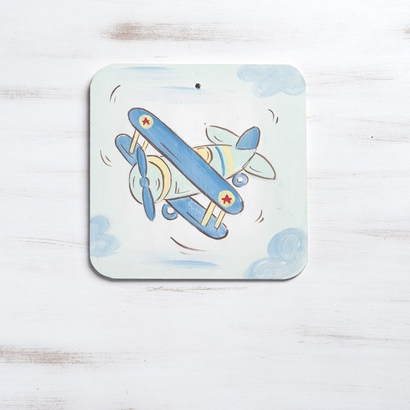 Ξύλινο τετράγωνο καδράκι με αεροπλάνο βεραμάν-μπλε, ιδανικό για διακοσμήσεις και κατασκευές