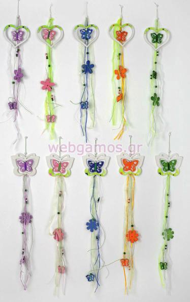 Μπομπονιέρα Βάπτισης κρεμαστή με σχέδιο πεταλούδα σε 10 σχέδια. Η τιμή περιλαμβάνει το δέσιμο της μπομπονιέρας με 5 κουφέτα. Διαστάσεις 60 εκ.