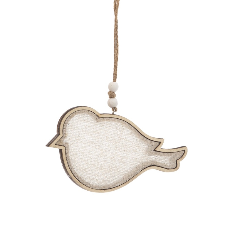 Ξύλινο κρεμαστό τύπου τελάρο natural σε σχήμα πουλιού, ντυμένο με λευκό ύφασμα.Ιδανικό για κατασκευές.