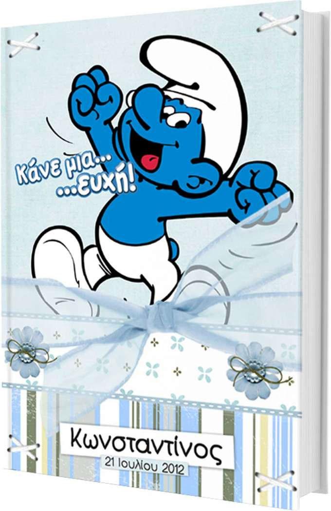 Βιβλίο ευχών με θέμα τα στρουμφάκια με διαστάσεις 30 x 21.5 cm. Ιδανικό για βάπτιση σε κοριτσάκι και αγοράκι. Μπορούμε να προσαρμόσουμε οποιο άλλο θέμα θέλετε.