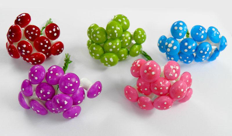 Διακοσμητικά Μανιτάρια με ύψος 2 εκ σε διάφορες αποχρώσεις. Η τιμή αφορά το ματσάκι το οποίο περιλαμβάνει 12 τεμάχια. Ελάχιστη ποσότητα 12 ματσάκια.