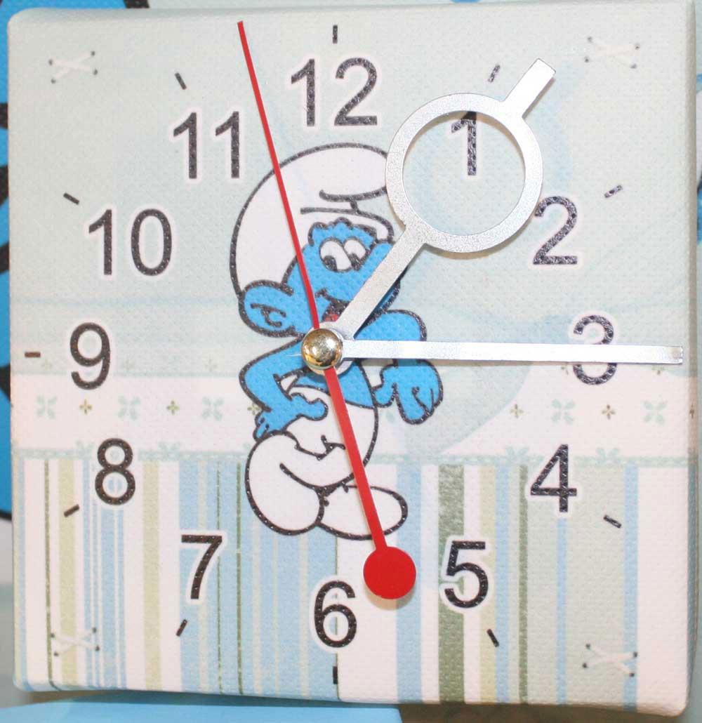 Καμβαδάκι Ρολόι στρουμφάκι σε διάσταση 12 x 12 cm για δωράκι. Μπορούμε να προσαρμόσουμε όποιο θέμα θέλετε.
