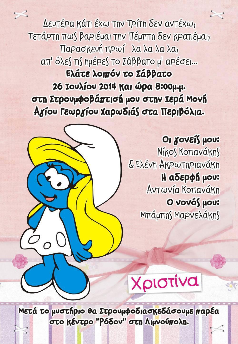 Θέμα Βάπτισης στρουμφάκια | Προσκλητήριο Βάπτισης στρουμφίτα (w650)