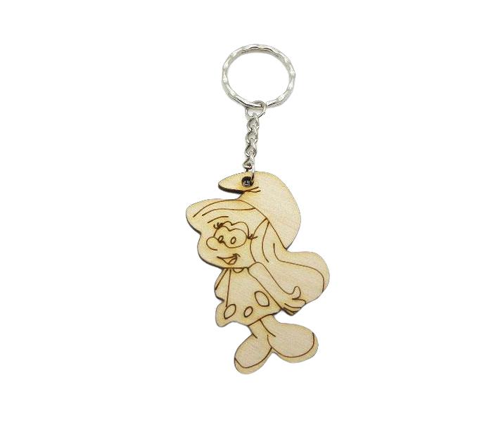 Μπρελόκ Στρουμφίτα  ξύλινο χαραγμένο. Διάσταση μπρελόκ 11.5 cm. Η τιμή αφορά το μπρελόκ . Ελάχιστη ποσότητα 50 τεμάχια. Μπορεί να γίνει οποιαδήποτε φιγούρα θέλετε. Το ίδιο μπορεί να γίνει και μαγνητάκι.