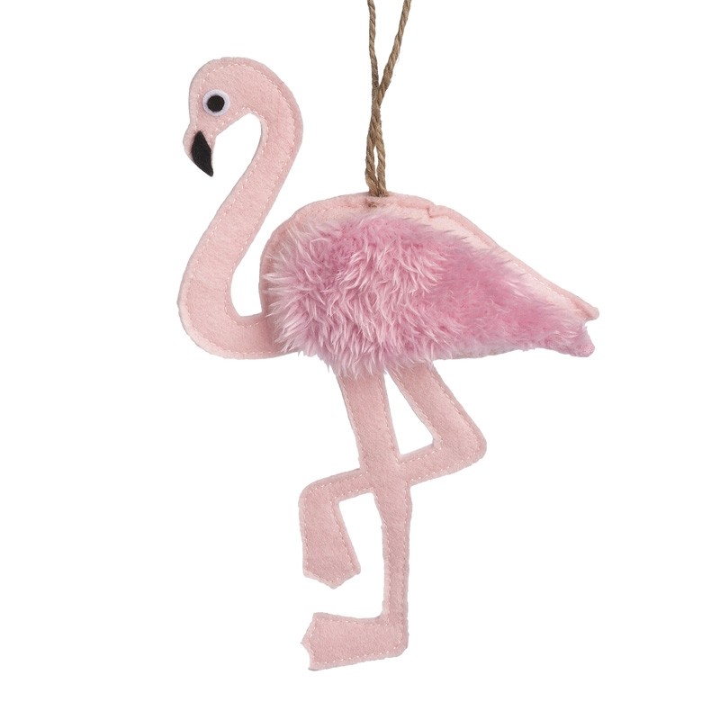 Κρεμαστό διακοσμητικό Flamingo σε ροζ χρώμα με φτερά από πούπουλα. Φτιαγμένο από τσόχα.