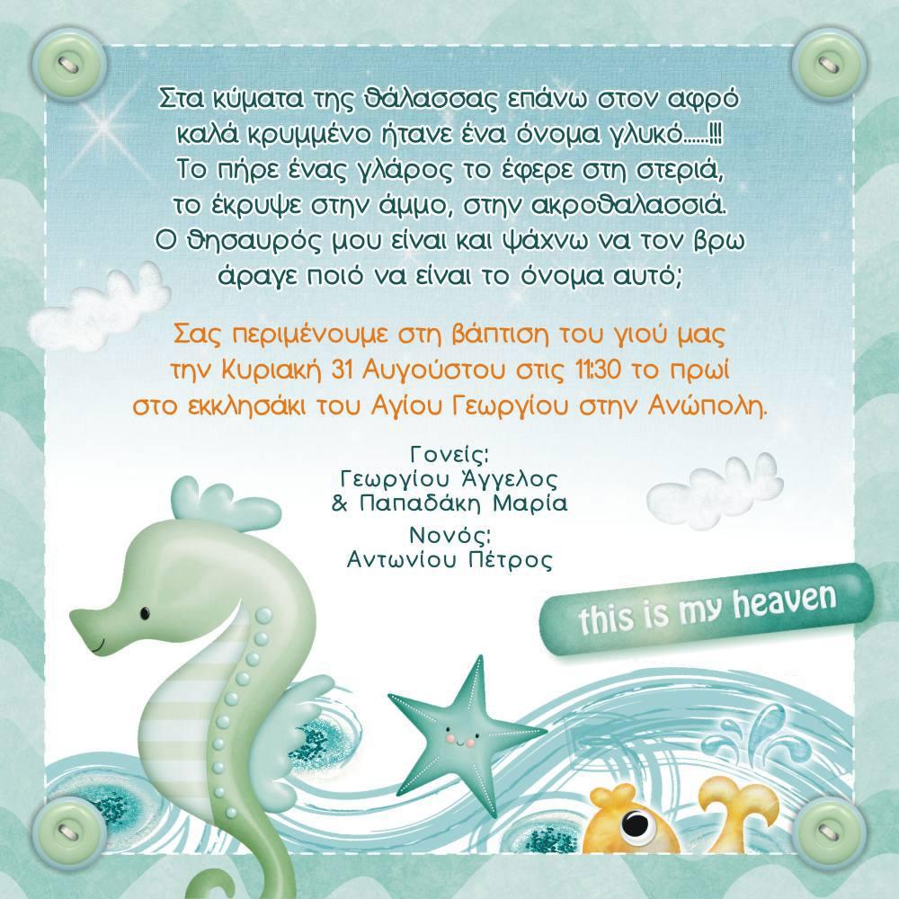 Προσκλητήριο Βάπτισης ιππόκαμπος (w636)
