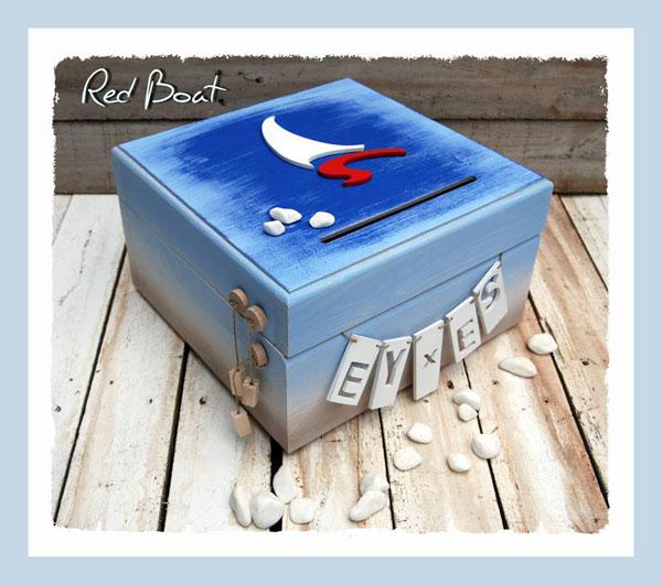 Θαλασσινό Θέμα βάπτισης | Ξύλινο Κουτί Ευχών βάπτισης καράβι (853530)