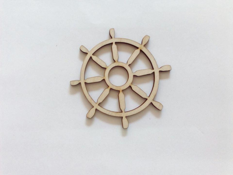 Ξύλινο Διακοσμητικό Τιμόνι με διαστάσεις 8 x 8 εκ. Η τιμή αφορά το τεμάχιο με ελάχιστη ποσότητα παραγγελίας 50 τεμάχια.
