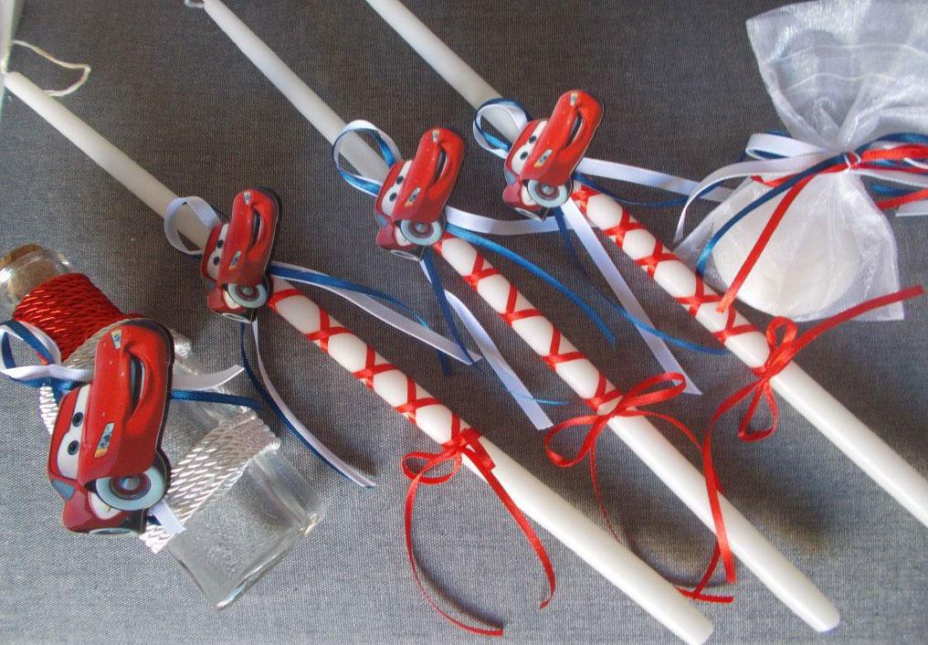 Σετ λαδικού με θέμα cars το οποίο περιλαμβάνει 3 κεράκια για την κολυμπήθρα, σαπουνάκι και μπουκαλάκι για το λάδι. Μπορούν να γίνουν ότι φιγούρες θέλετε.