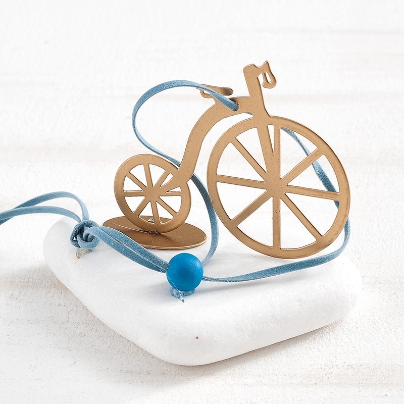 Είναι στολισμένο με χρυσό μεταλλικό ποδήλατο,suede κορδόνι και χάντρα.