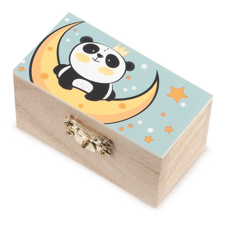 Ξύλινο natural σεντούκι με μεταλλικό κούμπωμα. Είναι διακοσμημένο με αυτοκόλλητο print panda.