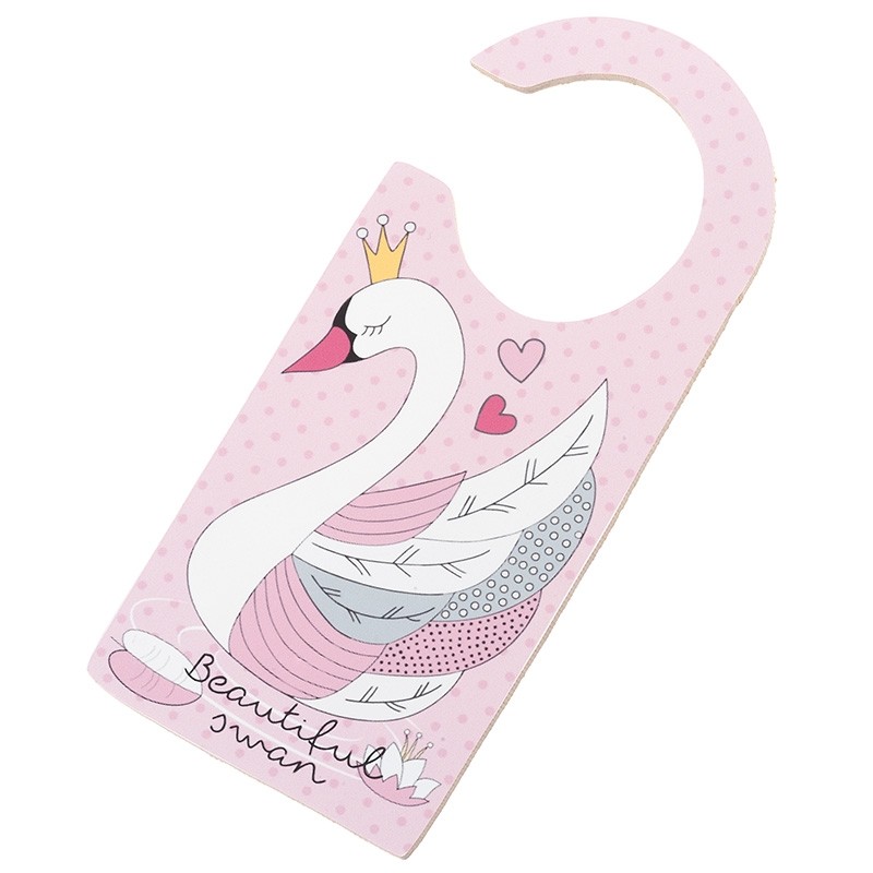 Ξύλινο κρεμαστό διακοσμητικό πόρτας με αυτοκόλλητο κύκνος