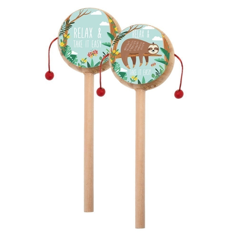 Ξύλινο natural τυμπανάκι με αυτοκόλλητο print Βραδύποδας με διαφορετικό σχέδιο μπρος-πίσω.