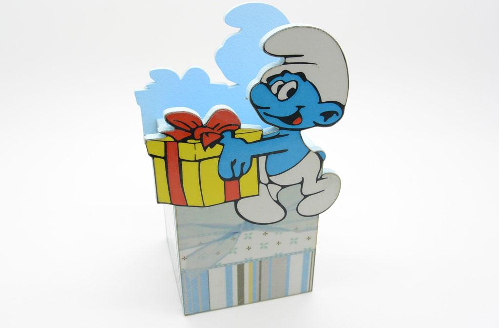 Ξύλινη Μολυβοθήκη στρουμφάκι για δωράκι σε βάπτιση ή παιδικό πάρτυ.