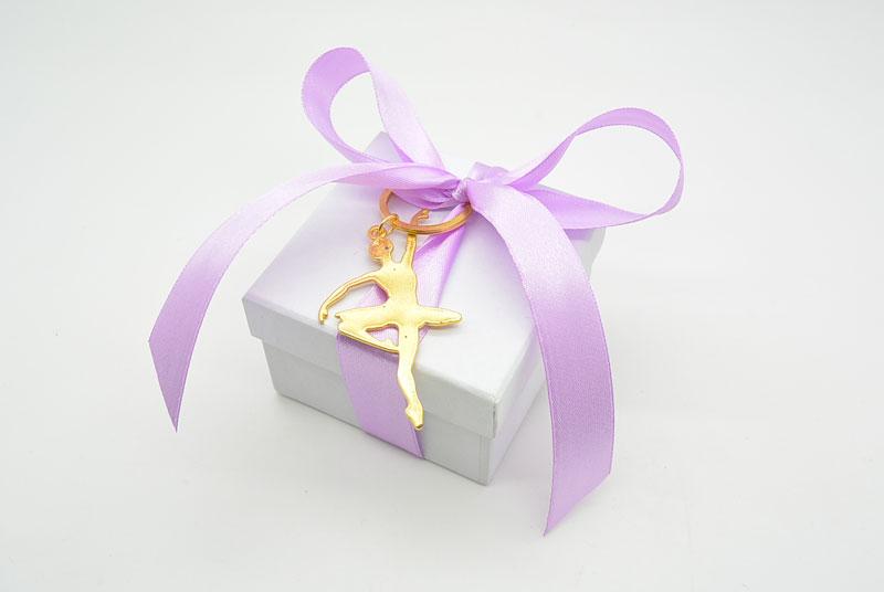 Μπομπονιέρα Βάπτισης κουτάκι με μπρελόκ μπαλαρίνα.  Η τιμή περιλαμβάνει το δέσιμο της μπομπονιέρας με 5 κουφέτα αμυγδάλου ή 9 κουφετάκια smarties. Μπορεί να γίνει σε διάφορες αποχρώσεις.