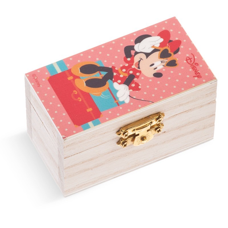 Disney ξύλινο natural σεντούκι με μεταλλικό κούμπωμα. Είναι διακοσμημένο με αυτοκόλλητο print Minnie Mouse Travel in style σε αποχρώσεις του ροζ .