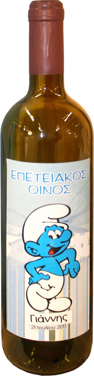 Ετικέτα Κρασιού με θέμα στρουμφάκια για εντυπωσιακό στολισμό στην δεξίωση της βάπτισης του παιδιού σας.
