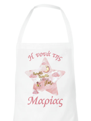 Λευκή ποδιά για το νονό ή τη νονά, εκτυπωμένη με θέμα "Twinkle Little Star". Γράψτε στα σχόλια μέσα στο καλάθι το όνομα του παιδιού σας.