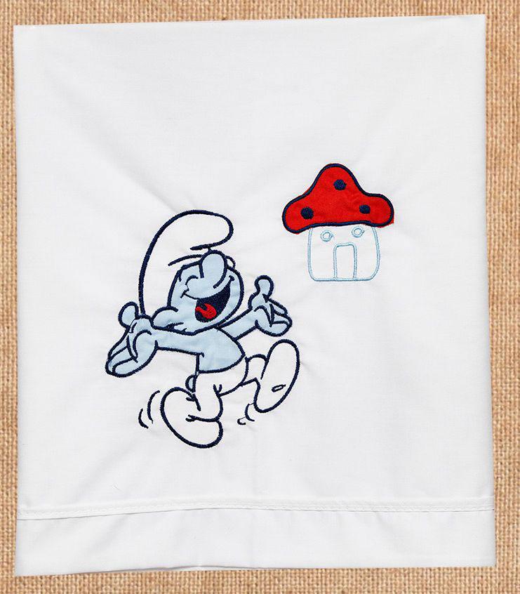 Λαδόπανα άριστης ποιότητας με σχέδιο στρουμφάκι και μανιταρόσπιτο. Το σετ περιλαμβάνει πετσέτα μικρή και μεγάλη, σεντονάκι και σετ εσώρουχα.