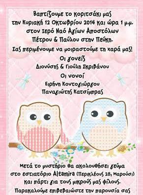 Θέματα Βαπτίσεων | Προσκλητήριο Βάπτισης κουκουβάγια (w6091)