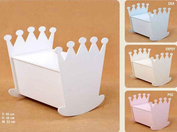 Μπαούλο Βάπτισης κορώνα μεγάλο σε 4 αποχρώσεις με διαστάσεις ύψος 45 εκ, πλάτος 36 εκ και μήκος 52 εκ.