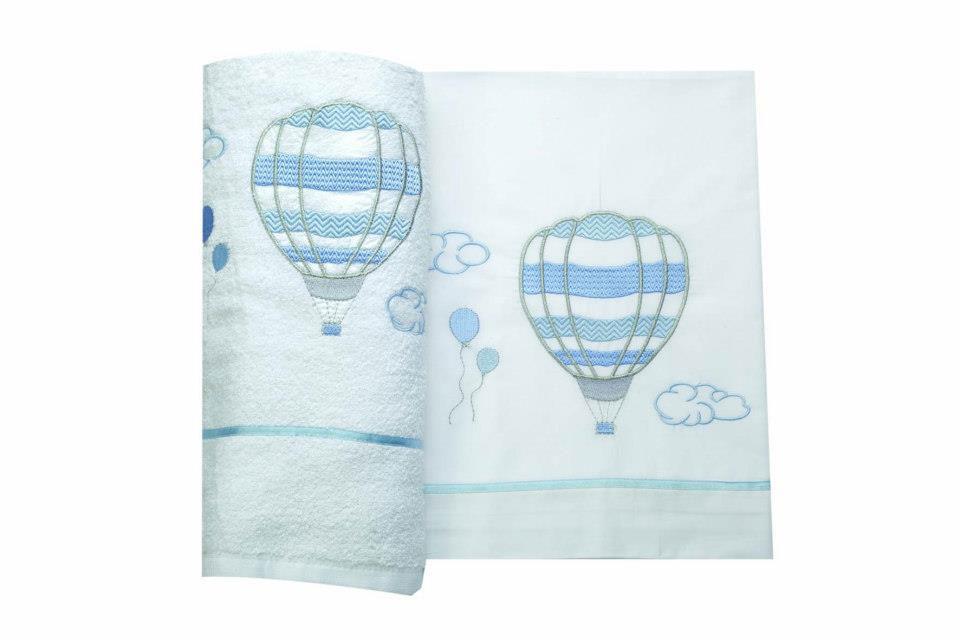Λαδόπανα Βάπτισης με θέμα αερόστατο ελληνικής κατασκευής άριστης ποιότητας βαμβακερά. Το σετ περιλαμβάνει πετσέτα μικρή και μεγάλη, σεντονάκι και σετ εσώρουχα.