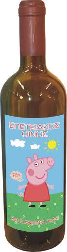 Ετικέτα Κρασιού με θέμα πέππα το γουρουνάκι για εντυπωσιακό στολισμό στην δεξίωση της βάπτισης του παιδιού σας.
