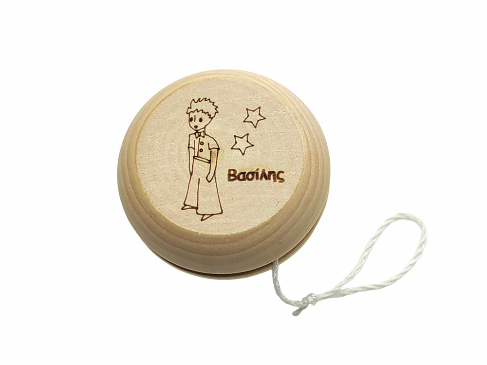 Ξύλινο ΓΙΟ ΓΙΟ μικρός πρίγκιπας με το όνομα του παιδιού σας. Μπορεί να γίνει σε ότι σχέδιο ή θέμα θέλετε. Διάμετρος 5,5 εκ.