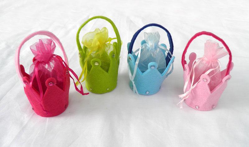 Καλαθάκι Τσόχα με σχέδιο κορώνα. Ιδανικό για γάμο και βάπτιση μαζί. Η τιμή περιλαμβάνει 5 κουφέτα αμυγδάλου.