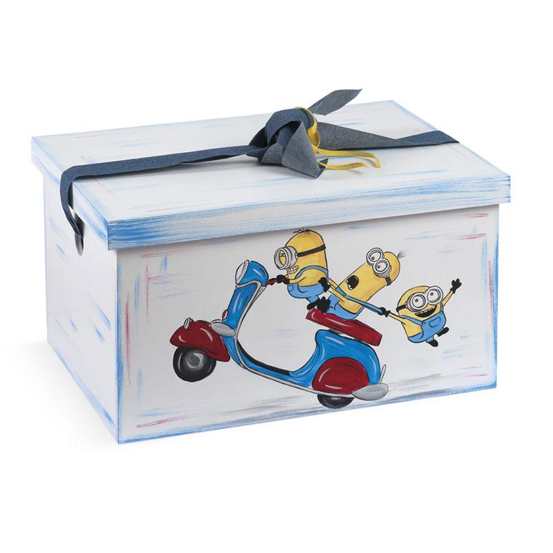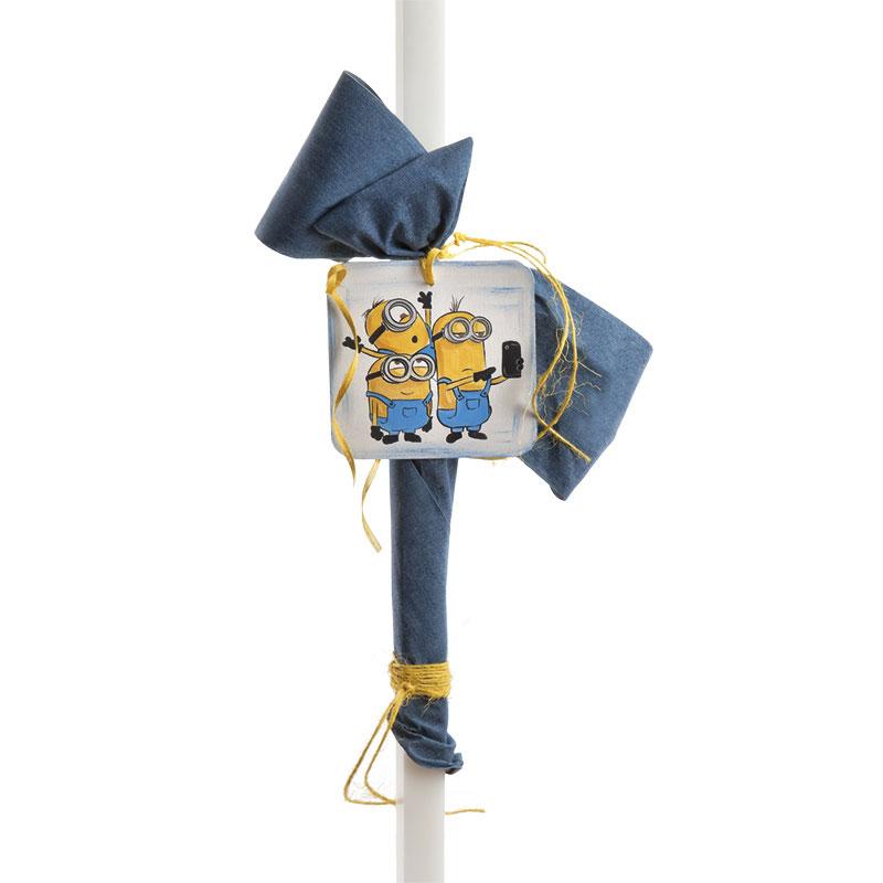 Σετ βάπτισης minions το οποίο περιλαμβάνει κουτί βάπτισης, σετ λαδόπανα, σετ λαδικού και λαμπάδα στολισμένα όλα στο ίδιο θέμα.